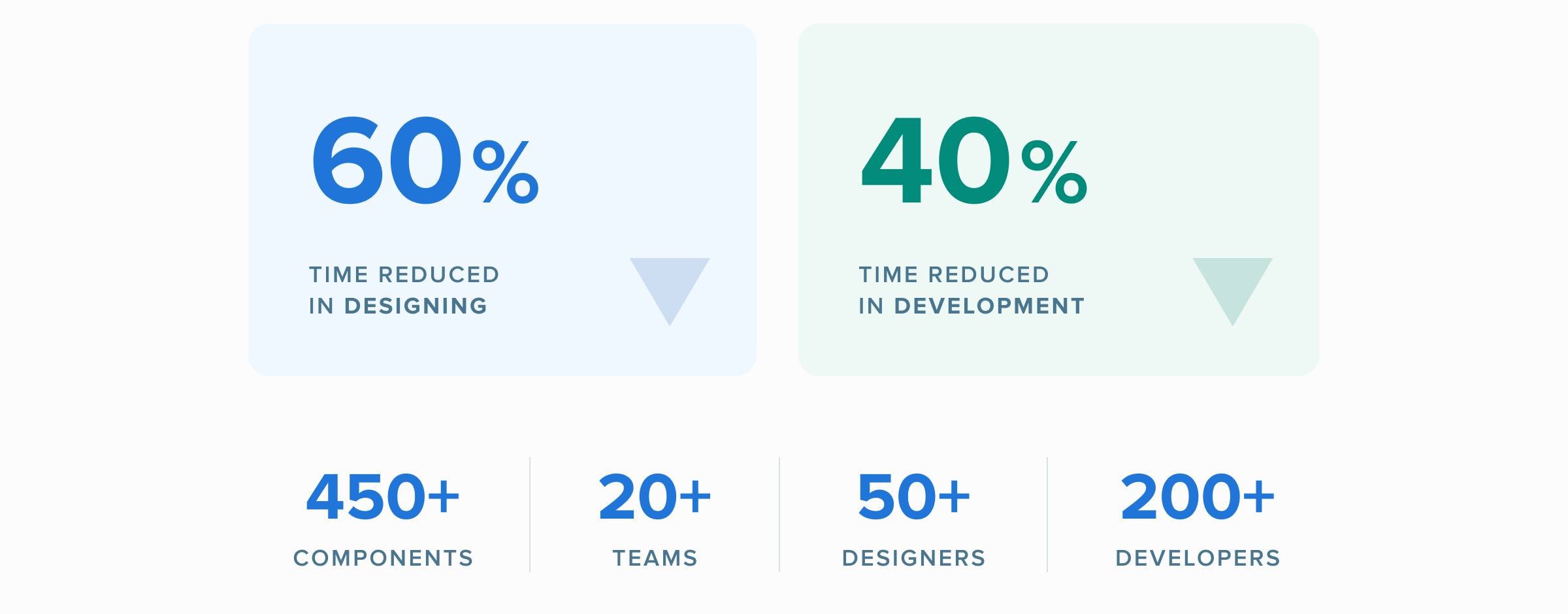 By comparing the creation of a UI from scratch vs by using the design system, there was a significant reduction in design time. The reusable components, with all the variants and interactions built-in, allowed designers to work significantly faster.