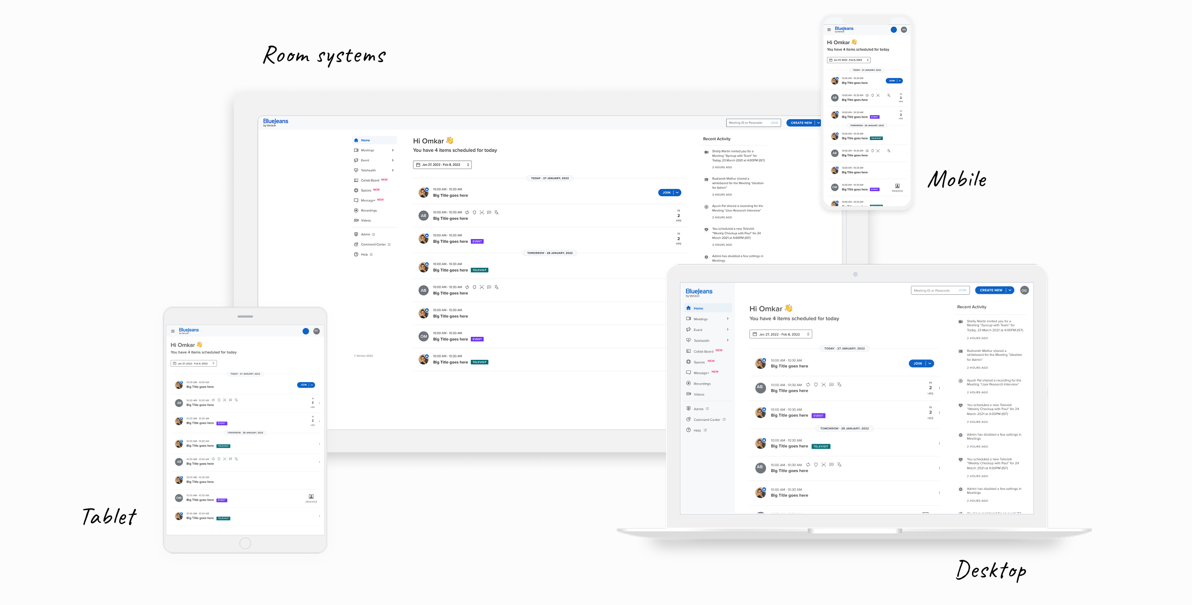 The design system was built to deliver a consistent experience across every touchpoint — from web to desktop applications, mobile apps, and conference room systems. Designed with scalability at its core, the system ensured seamless interactions across platforms without compromising performance or usability.